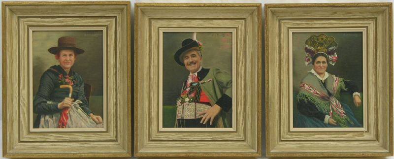 | A collection of three paintings of people in Tyrollean costume | |