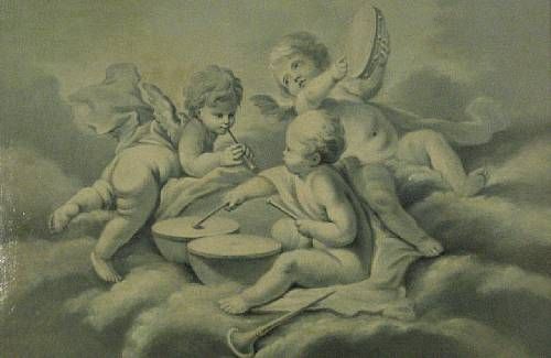 Three putti playing musical instruments