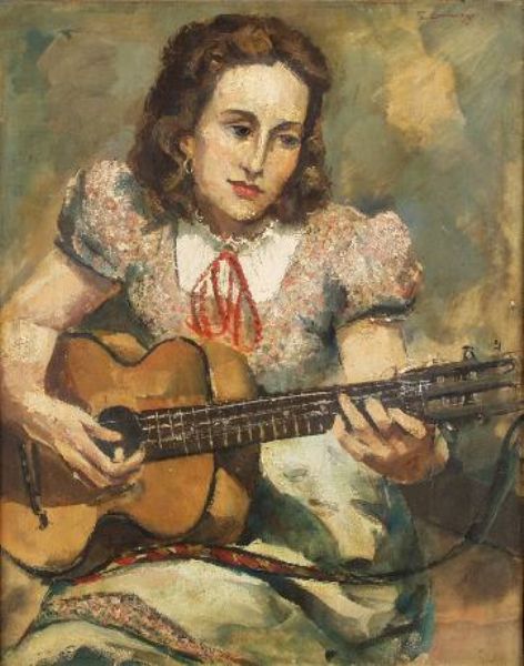 Junge Frau Gitarre spielend