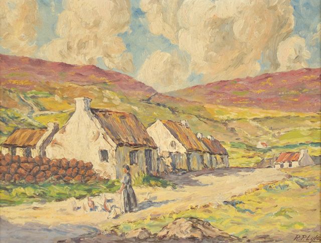 | An impressionistic landscape with woman feeding fowl, believed to portray the cottage of the Scottish artist, Robert Burns. | |