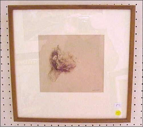 | Pen brown ink drawing on paper, profile portrait of an elderly woman | |