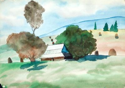Pejzaż z chatą