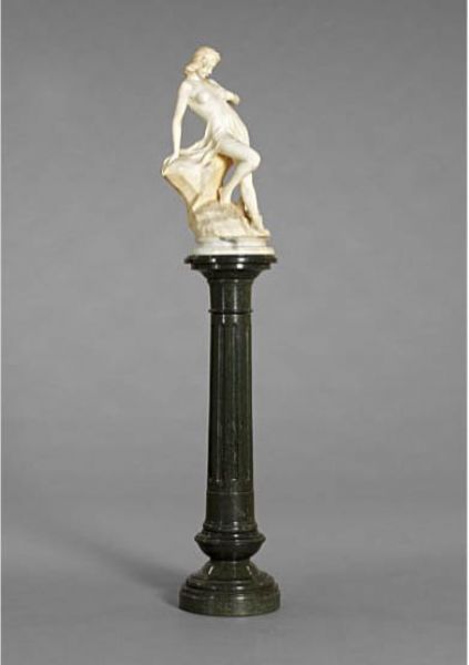 | Stående kvinne hvit marmor med sokkel i sort marmor | |