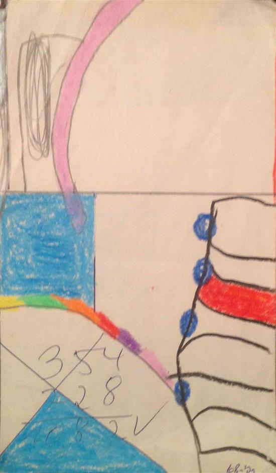 Pen and crayon on paper