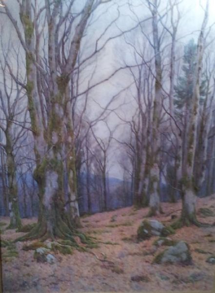 Autumn woodland landscape with bare beeches