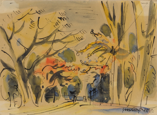 Ink and watercolour on paper