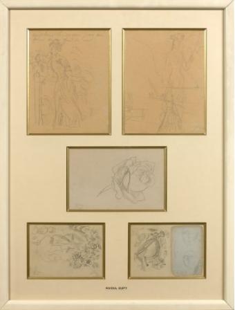 Cinq dessins sous un même encadrement