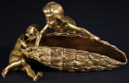 A Gilt Bronze Group of two children clutching a large basket