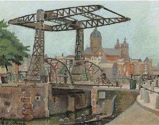 | Kamperbrug, Amsterdam, with the St. Nicolaas church and the Schreierstoren in the background | |