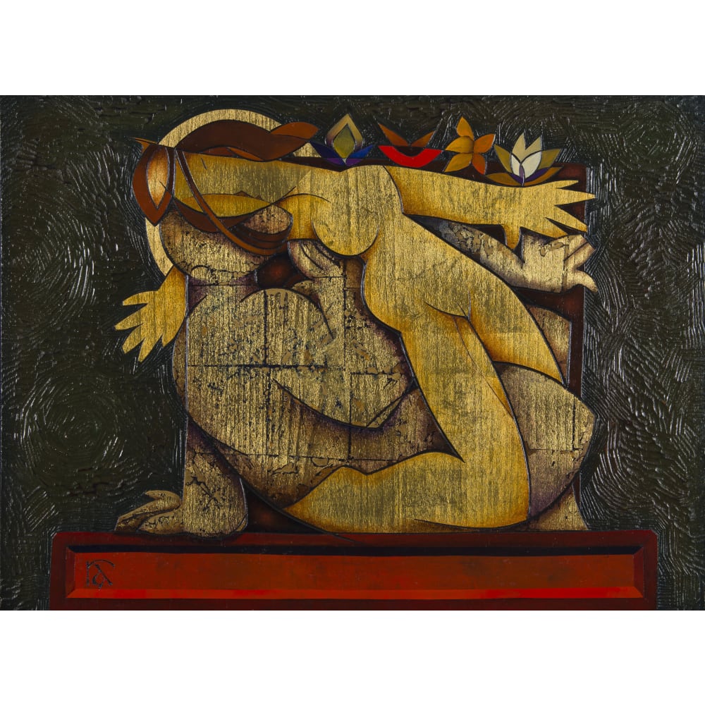 | Oil and gold leaf on beech veneer | |