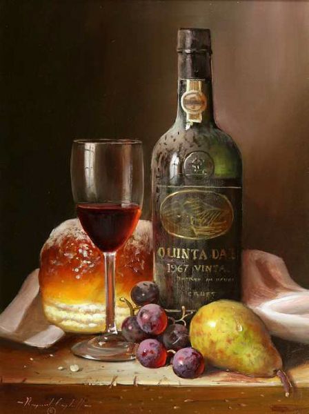 1967 Croft Vintage Port, with Fruit and Bread on a Ledge
