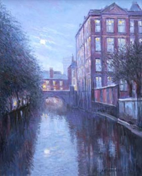 Moonlit Manchester canal scene