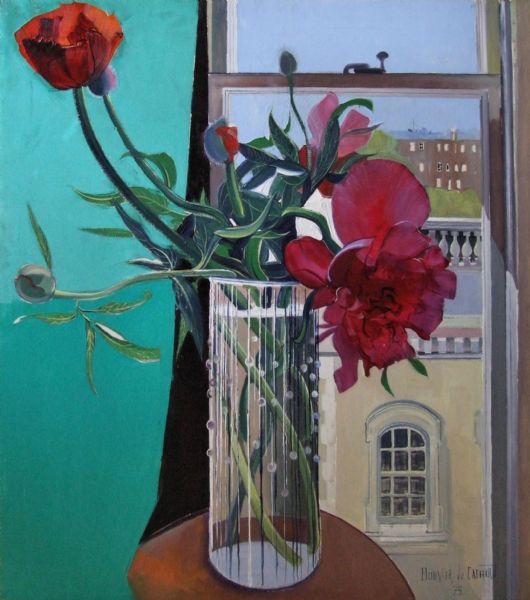 Still life with vase of poppies and peonies