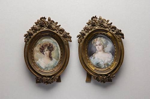 Watercolor on ivory, 2 items