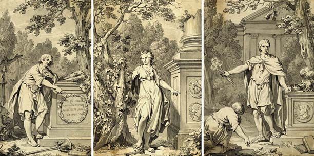 Je in sommerlicher Landschaft in antikisierter Kleidung