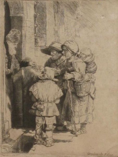 A FAMILY OF BEGGARS RECEIVING ALMS