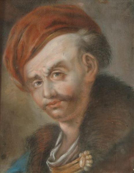 Head study of a man in a red cap