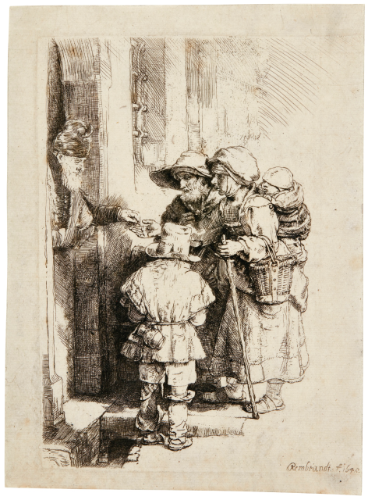 A BLIND HURDY-GURDY PLAYER AND FAMILY RECEIVING ALMS (B., HOLL. 176; NEW HOLL. 243; H. 233)
