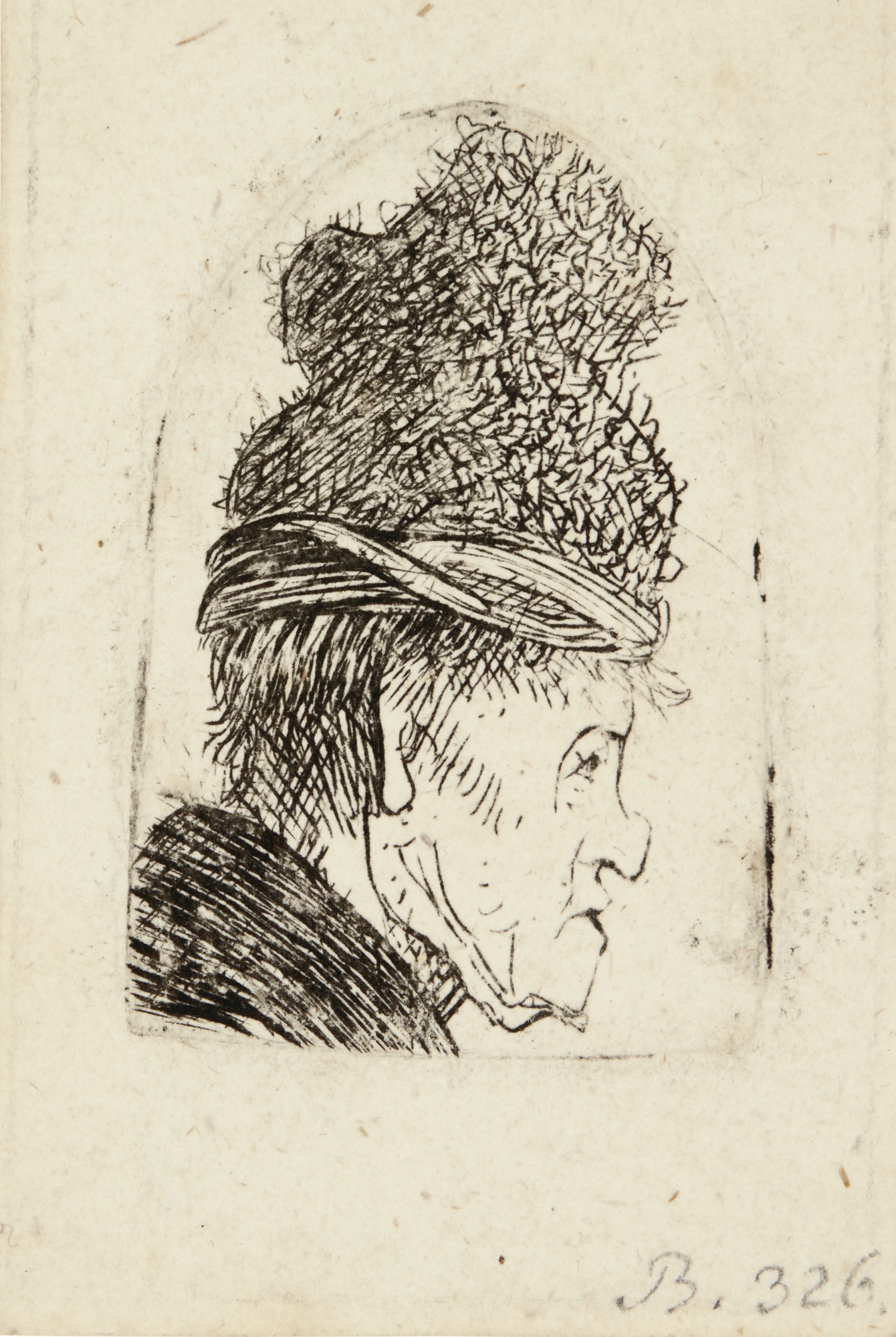 | GROTESQUE PROFILE: MAN IN A HIGH CAP (B., HOLL. 326; NEW HOLL. 35; H. 68) | |