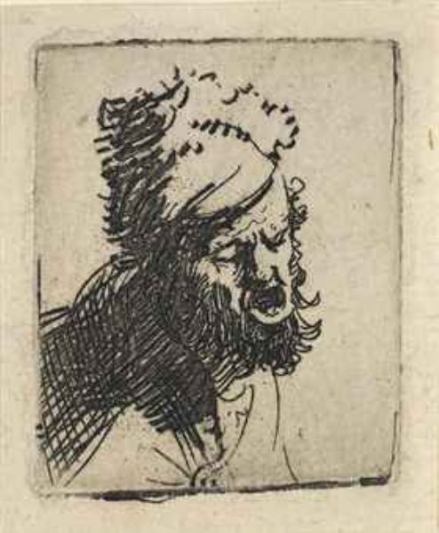 | Head of a Man in a Fur Cap, crying out (B., Holl. 327; H. 37) | |