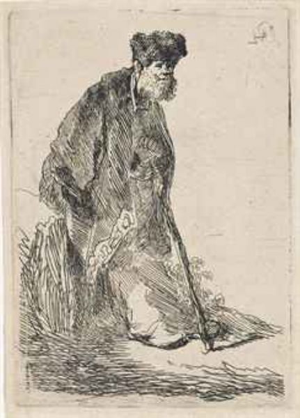 | Man in a Coat and Fur Cap leaning against a Bank (B., Holl. 151; H. 14) | |