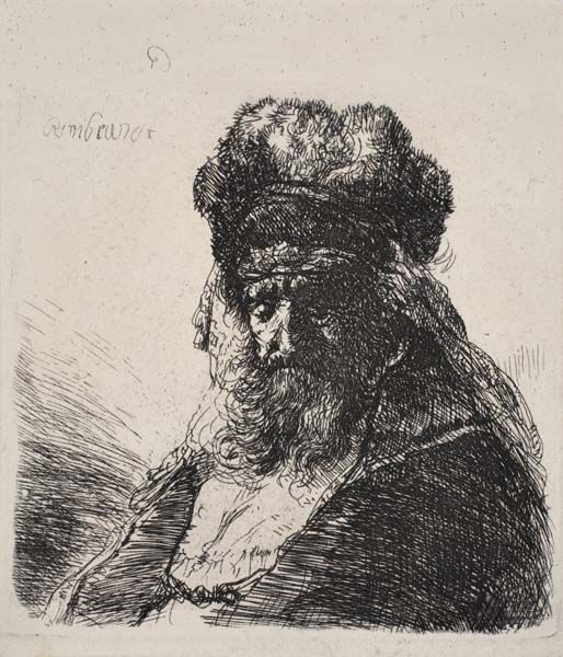 | Old Bearded Man in a High Fur Cap, with Eyes Closed. | |