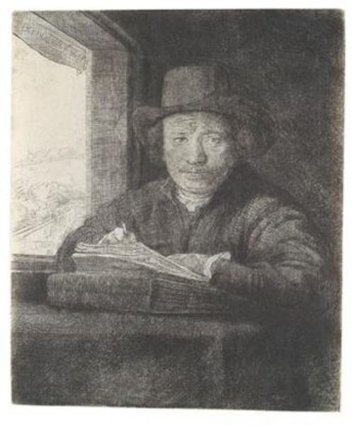 Rembrandt Drawing at a Window