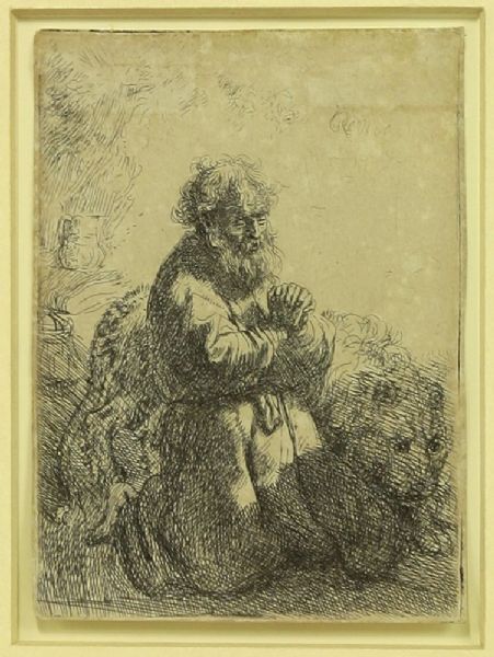 SAINT JEROME KNEELING IN PRAYER, LOOKING DOWN(