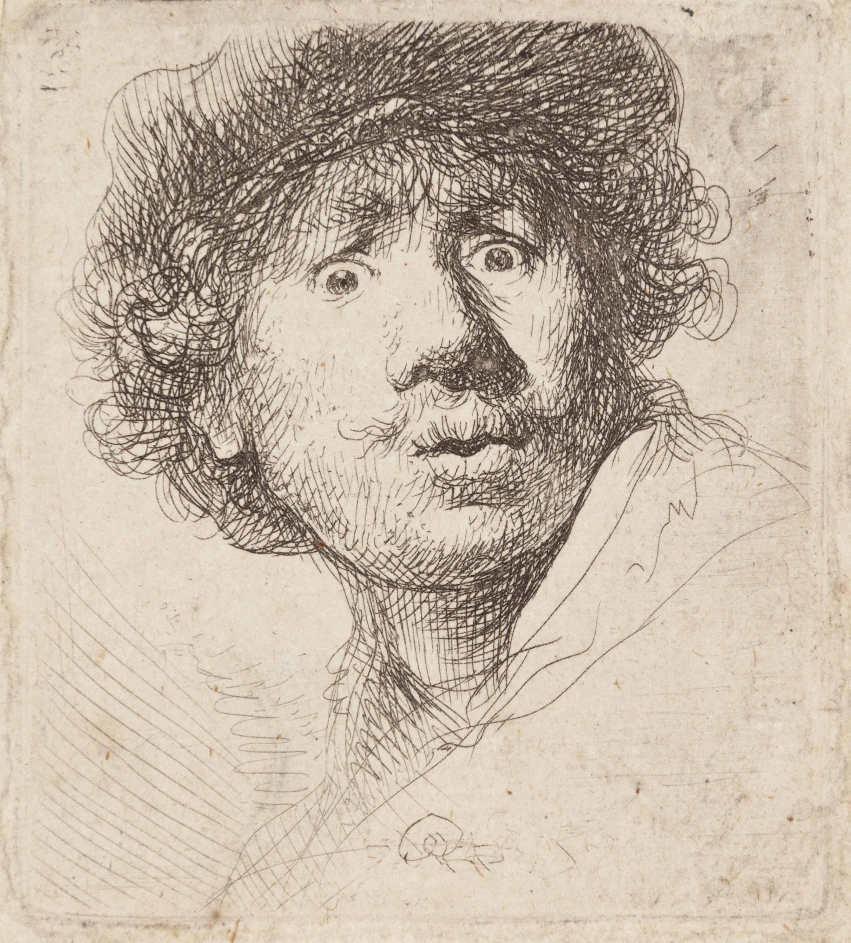| Self Portrait in a Cap, wide-eyed and open-mouthed | |