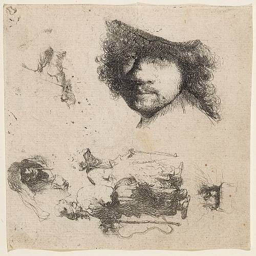 | Sheet of Studies, Head of the Artist, A Beggar Couple, Heads of an Old Man and an Old Woman | |