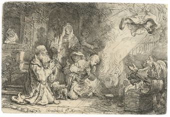| The Angel departing from the Family of Tobias (Bartsch, Hollstein 43; Hind 185) | |