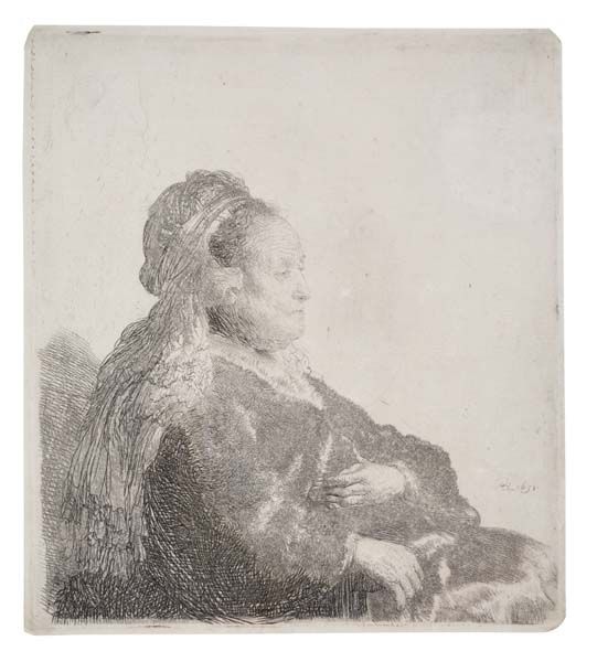 | The Artist's Mother Seated, in an Oriental Headdress: Half Length. | |