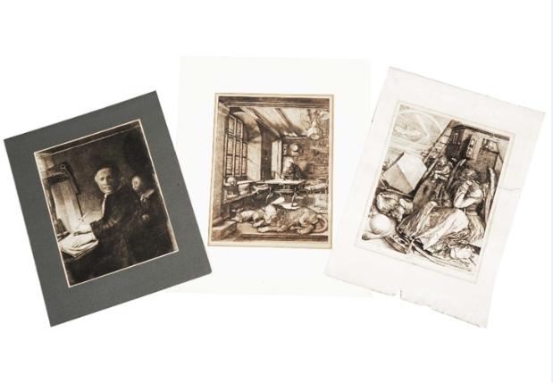 and two etchings after Albrecht Durer - 'St. Jerome in his Study', 25.5 x 19.5cm and 'Melancolia', 25.5 x 19.5cm, all unframed | |