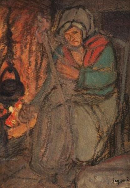 Paysanne au coin du feu