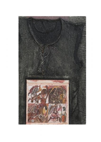 | Oil paint, ink and collage on plaster with wood and canvas | |