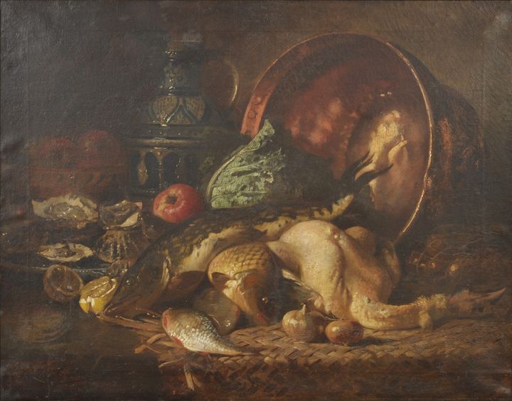 Eaubonne bei Paris, war tätig in Berlin Stillleben mit Fischen und Geflügel