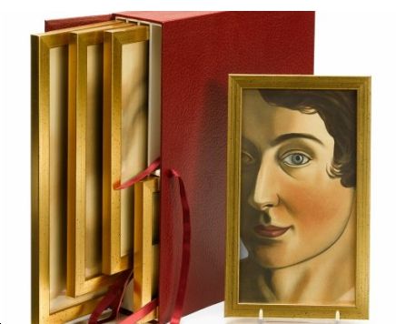 | Wood The full sheets, framed in individual metallic painted wood frames fitted into original red leather portfolio box with printed gold lettering | |