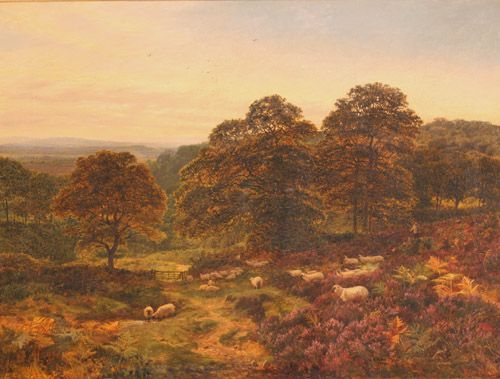 | Landscape with Shepherd and Flock grazing on Heath with Trees and Hills beyond | |