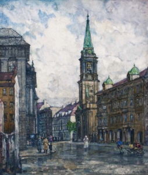 Parochialkirche in Berlin und die Klosterstrasse, mit Figurenstaffage