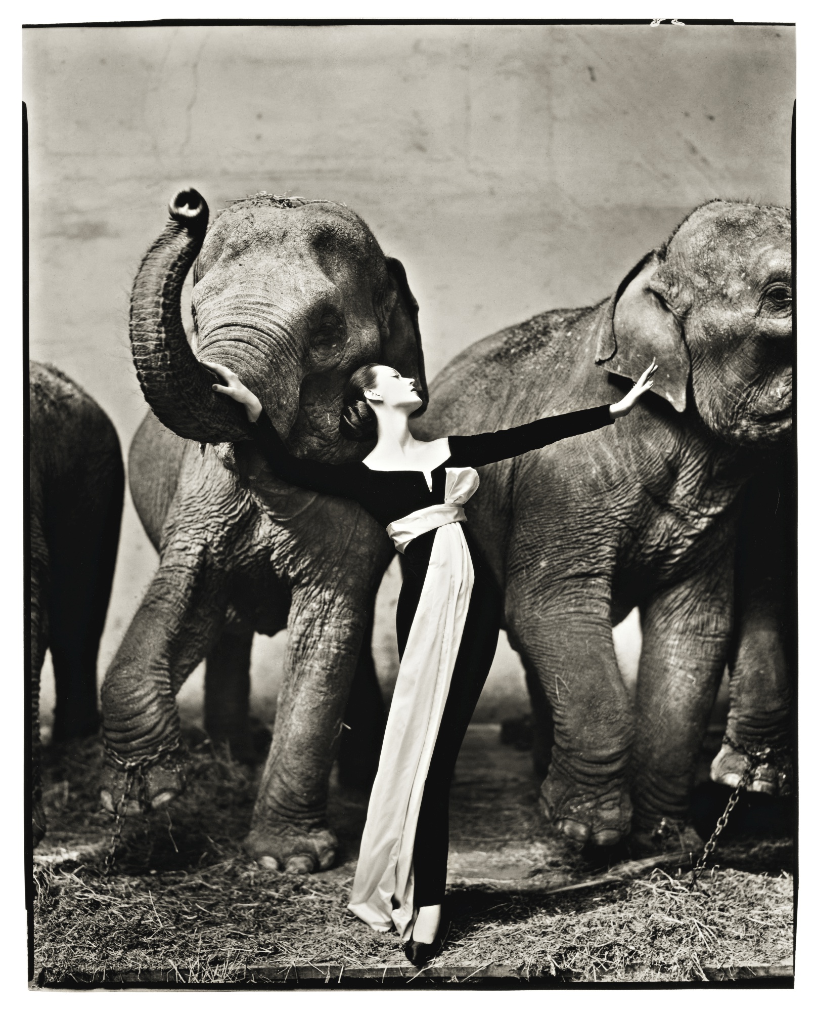 | DOVIMA WITH ELEPHANTS, EVENING DRESS BY DIOR, CIRQUE D’HIVER, PARIS | |