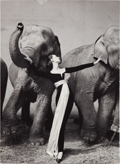 | Dovima with Elephants, Evening dress by Dior, Cirque d’Hiver, Paris, August | |
