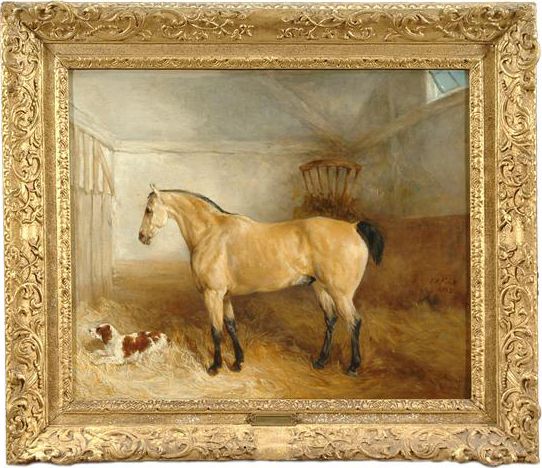 | A stable interior with a palomino and a spaniel 'Fido' | |
