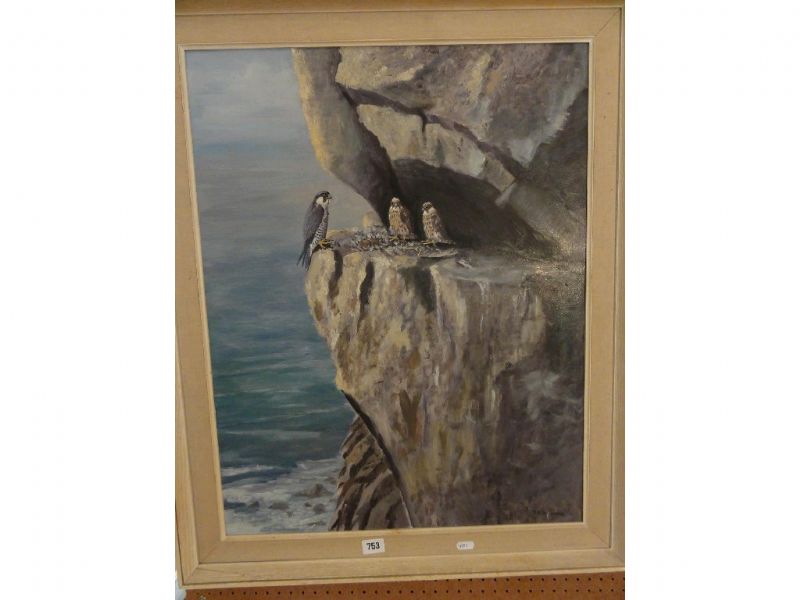 a cliff face with Peregrine Falcon and chicks