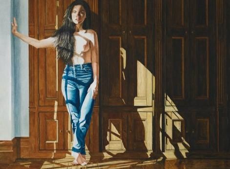 SEMI NUDE GIRL STANDING IN A SUNLIT ROOM