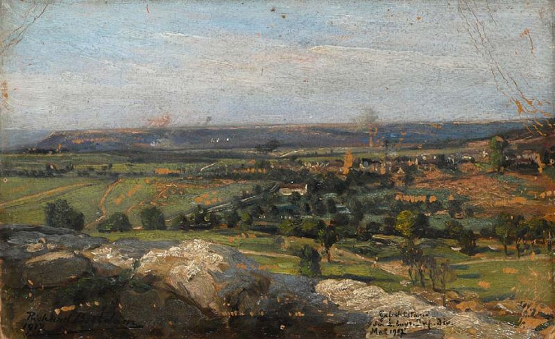 | Blick auf das Schlachtfeld... Winterberg, mit dem Dorf Saint Croix und dem Gefechtsstand der 2. bayerischen Inf. Div., im Mai 19 | |