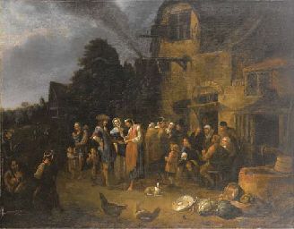 | La buona ventura in un esterno di taverna con contadini e animali | |