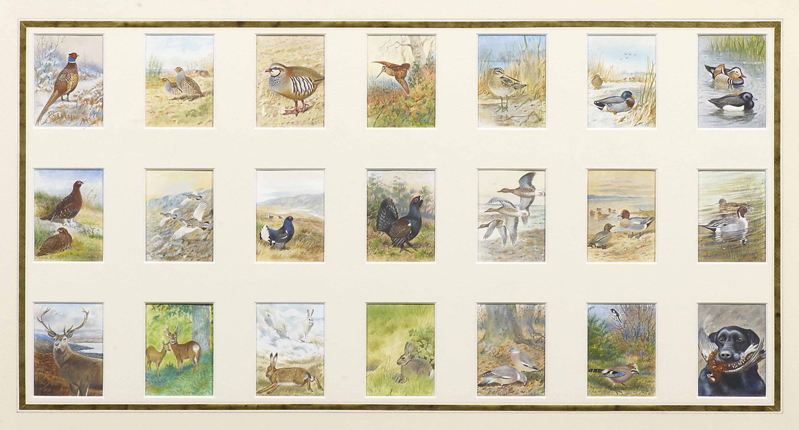 | Twenty-one game cards, including pheasant, partridge, woodcock, snipe, mallard, grouse, hares and deer | |