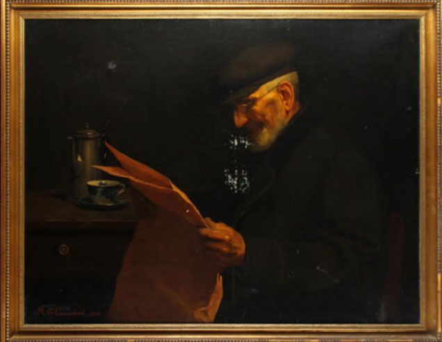 An old man reading the paper