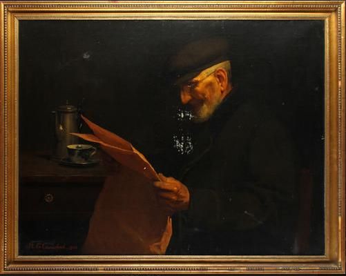An old man reading the paper