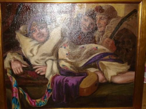 Pierrots with woman and guitar